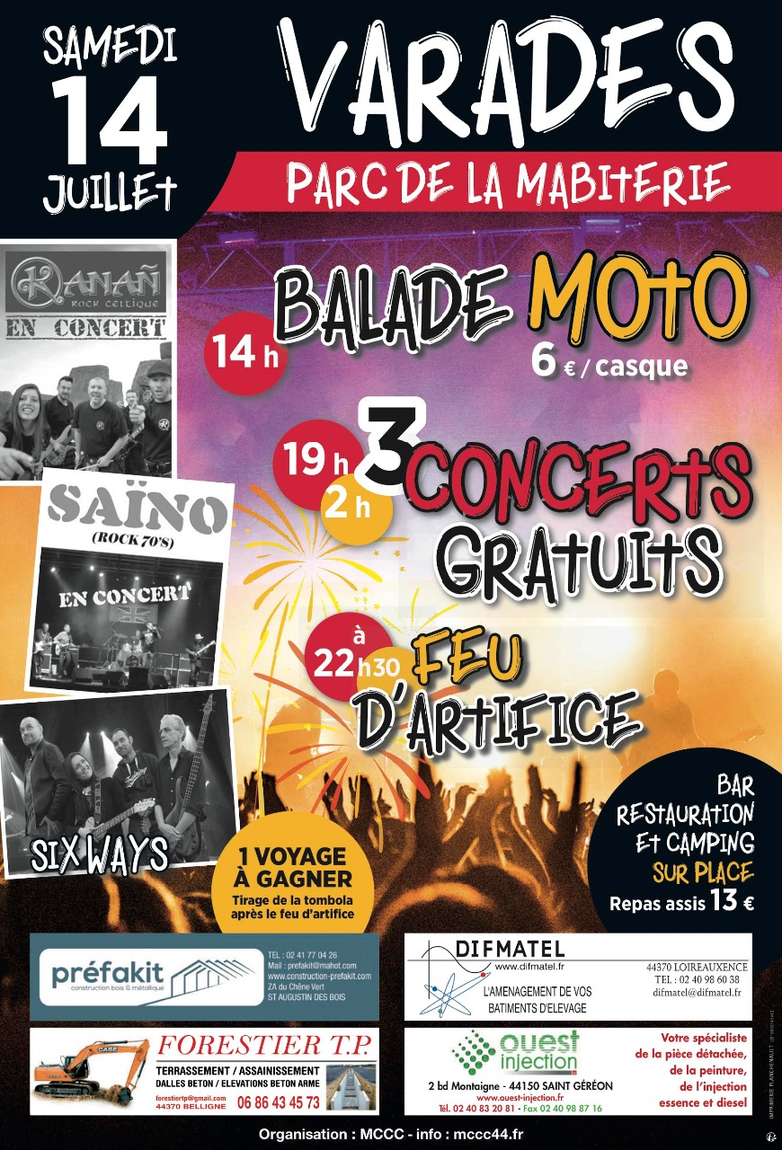 On vous attend, samedi 14 juillet 2018 à Varades, à l'occasion d'une soirée "concerts" organisée par le MCCC 44 de La Chapelle Saint Sauveur (44), à partir de 20h.